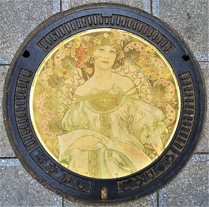 ミュシャのデザインマンホール「夢想」(編集部撮影)