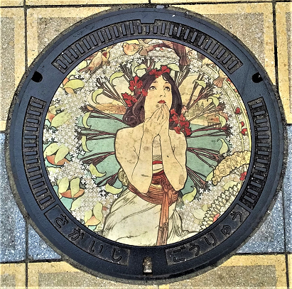 ミュシャのデザインマンホール「モナコ・モンテ・カルロ」(編集部撮影)